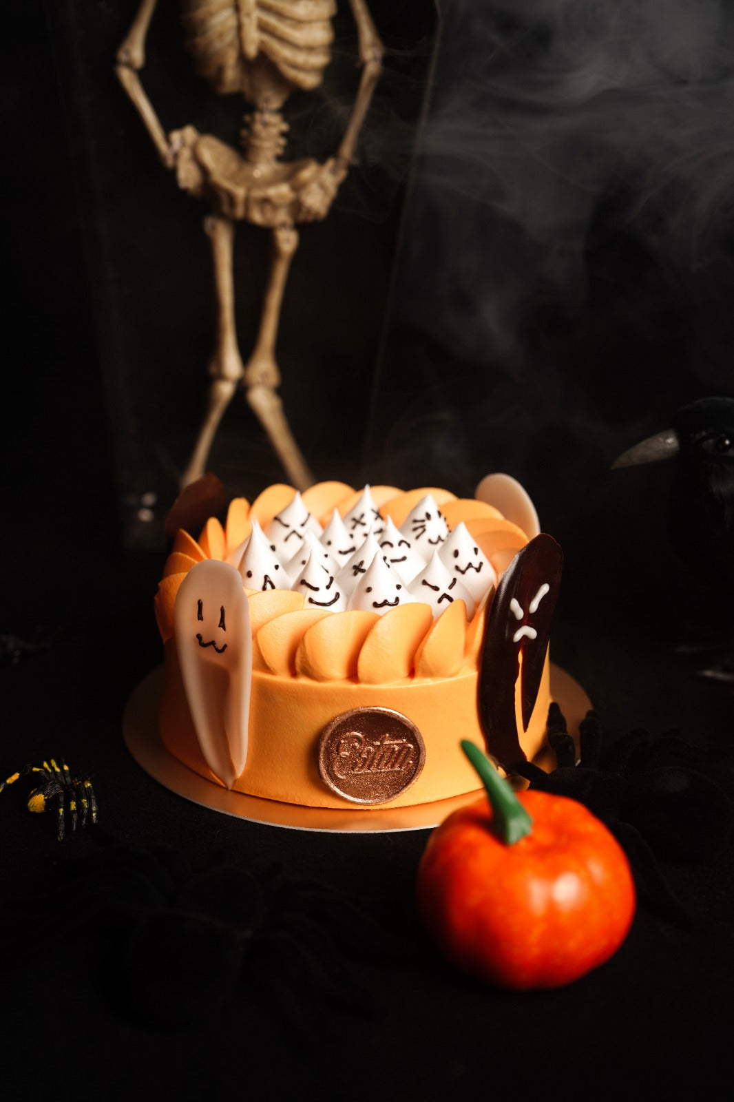 經典的鮮果忌廉蛋糕,以輕盈綿密的海綿蛋糕為基礎,加入時令水果炮製,口感清新怡人。蛋糕更以可愛的幽靈作裝飾,營造出驚悚又甜蜜的氛圍!